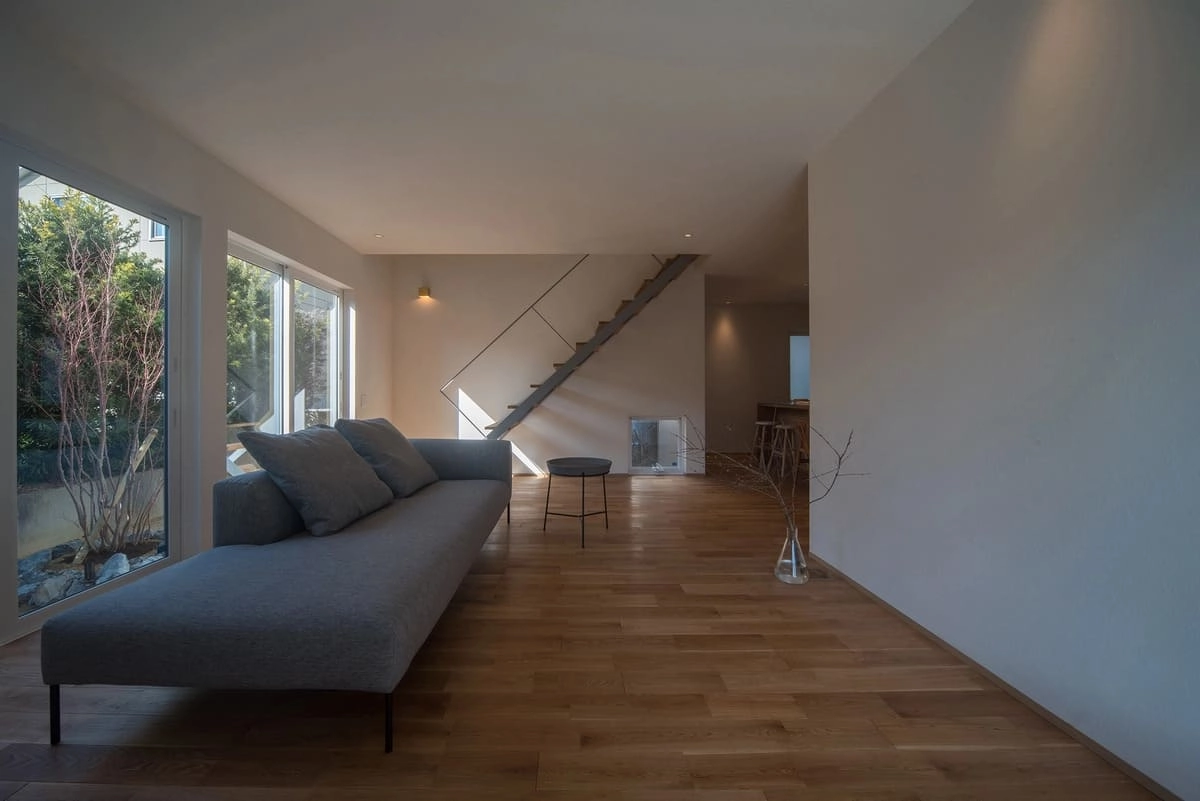季節感を感じられるよう設計された住宅で、狭小地ならではの工夫が施されています。