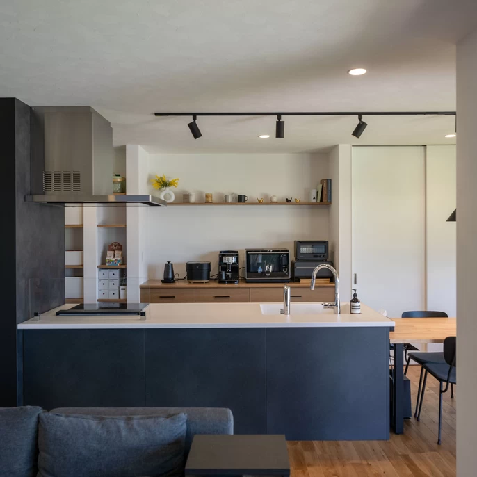 「おしゃれ=住みにくい」を覆す、最短の家事動線。家事の合間に休める畳コーナーなど、毎日の「楽」もしっかりデザインしています。