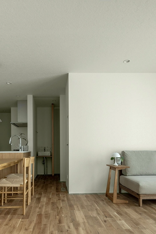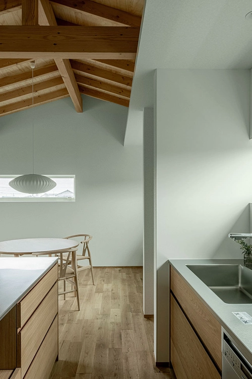 外壁には落ち着きのあるグレーの塗り壁、内装には無垢材を用いて木の質感を大切にしたデザインです。 また、リビングに隣接した落ち着きのある和室で、大切なゲストをお迎えできます。