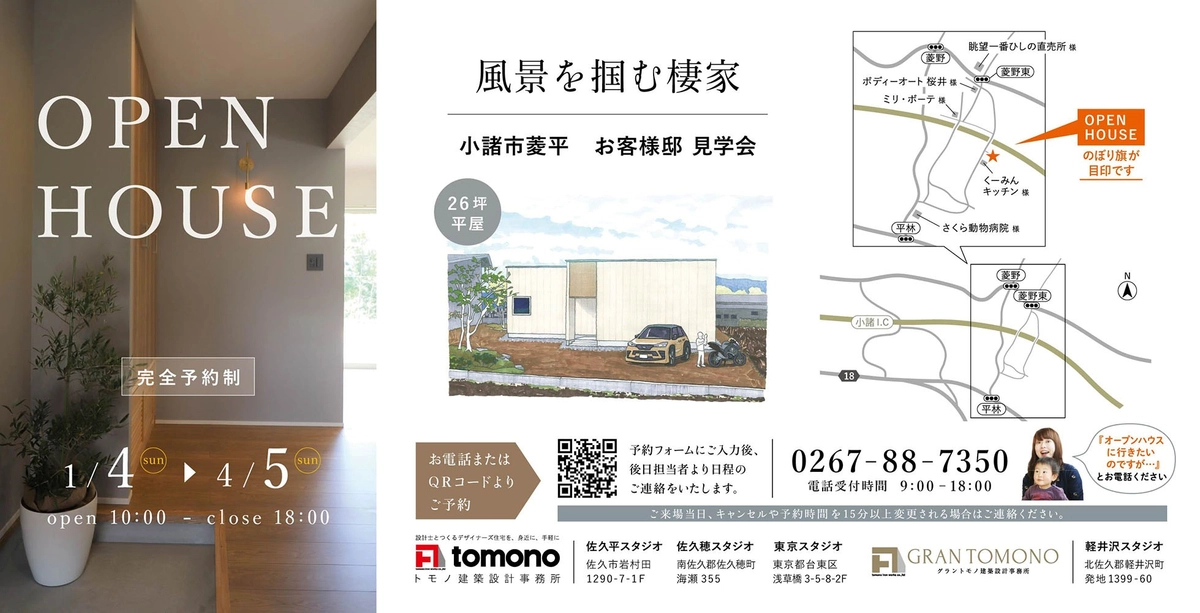 実際に見ないとわからない空間の広がり、見晴らし、床下エアコン一台での暖かさ等、ぜひご体感ください。