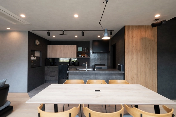 まるでカフェのような生活環境が広がる、閑静な高台に建つ2階建て住宅。リビングから広がる大開口の窓からは、美しい景色を一望でき、心地よい光と風が家中を包み込みます。ここでの暮らしは、まさに心と体をリフレッシュさせる贅沢な時間です。