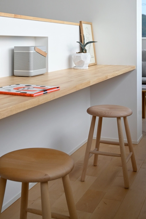 リビングの裏には小さなワークスペースを設置。