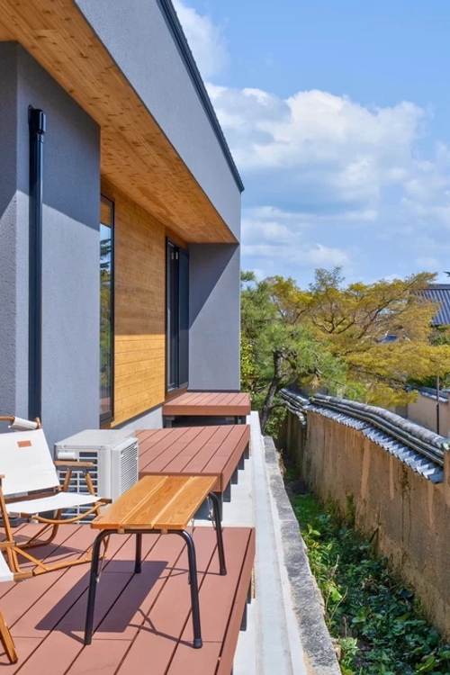 各部屋に面したデッキエリアは、まるで外とつながるもうひとつのリビング。