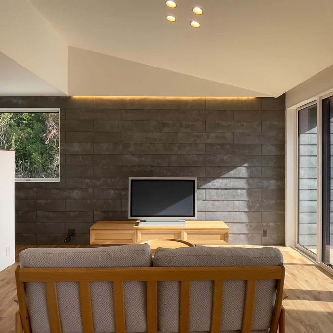 窓を最小限に抑えたミニマルな外観ながら、一歩足を踏み入れると降り注ぐ光。