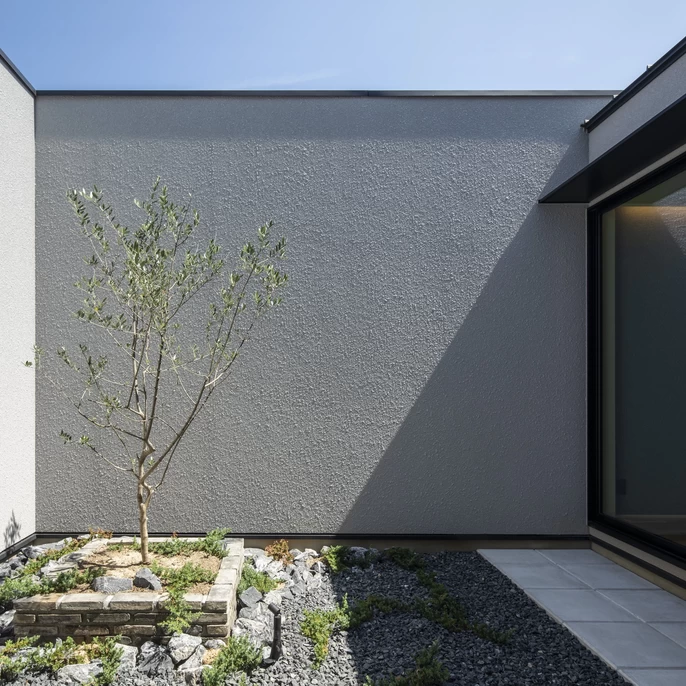“内”に隠されたテラスと中庭で、プライバシーを確保しながら、”外”の明るさと開放感を感じられる住まいに仕上がりました。