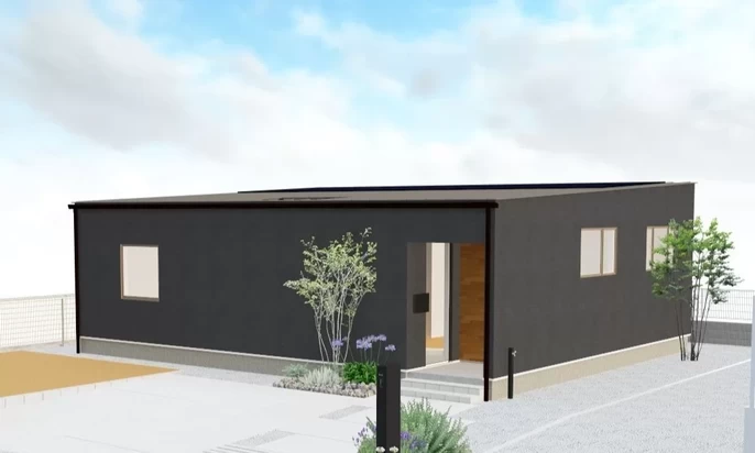 リビングを勾配天井にすることで、26坪のコンパクトな平屋に圧倒的な大空間を生み出しました。また回遊動線を採用し、掃除や移動をスムーズに。日々の暮らしがより軽やかになる設計です。