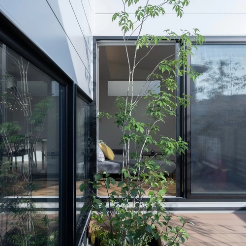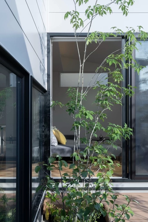 中庭はリビング、玄関、洗面から眺められ、好きな植物を置いて木々の四季折々の変化が楽しむことができます。どこにいても自然の癒しを感じられる贅沢な一角です。