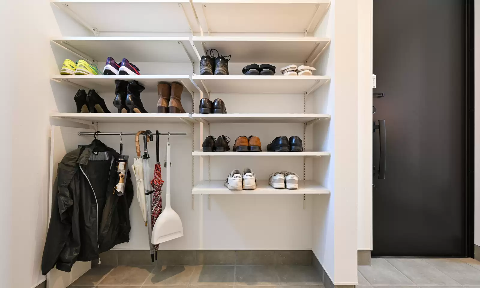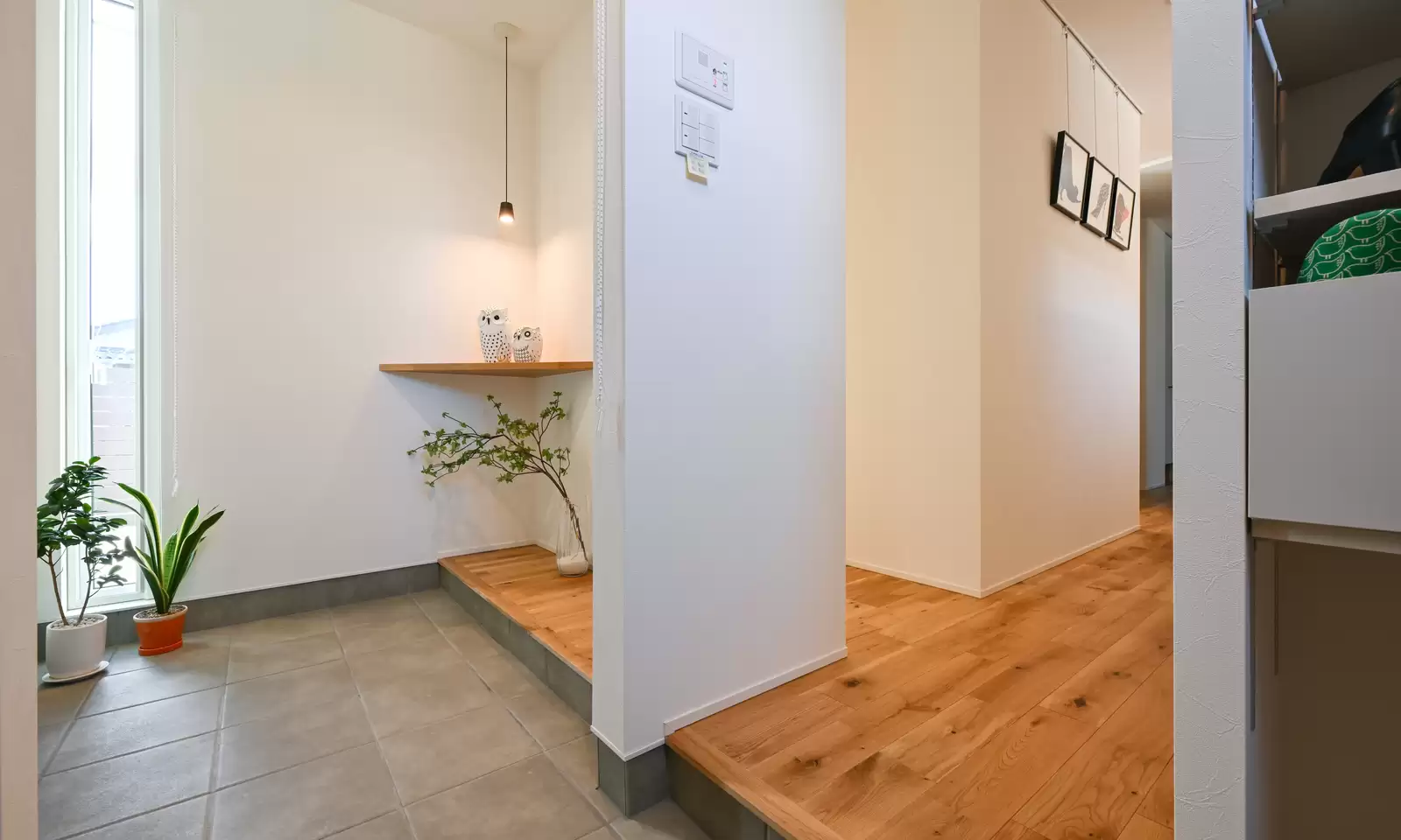 2WAY玄関で間にロールスクリーンを設けることでプライバシーを確保