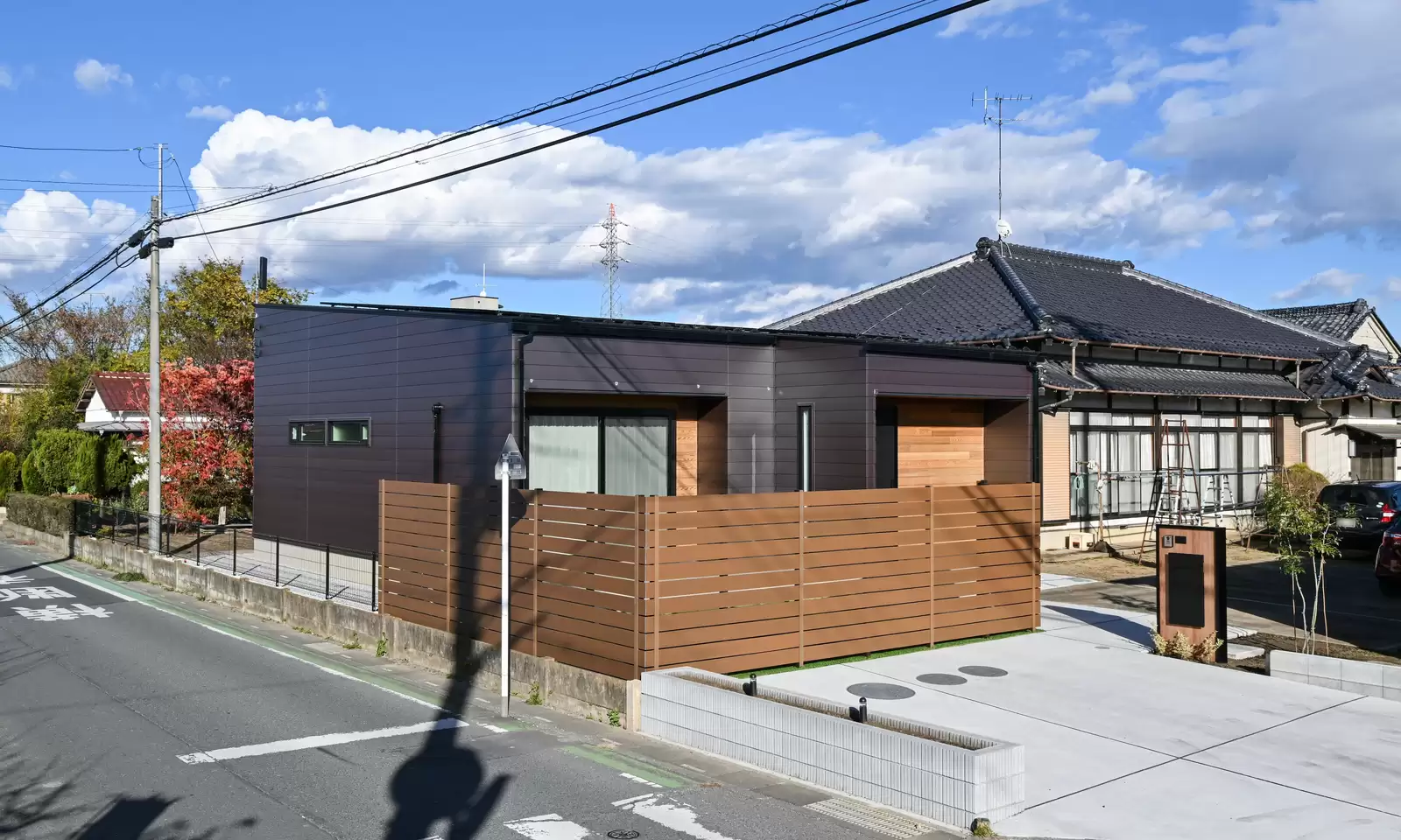 黒のガルバリウム鋼板と板張りでシンプルモダンなファザードに。建築家住宅としての洗練されたデザインを持ちながら、決して悪目立ちすることのない永く愛せる外観になっています