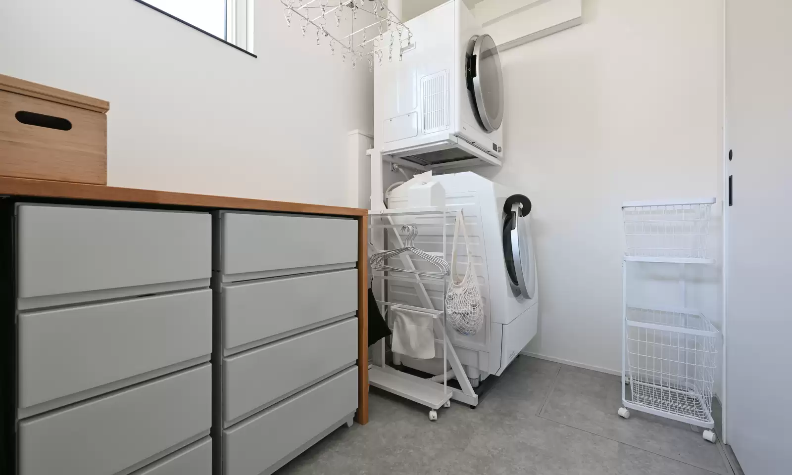 洗う→干す・乾かす→たたむ→しまうが室内で完結できるスペース
