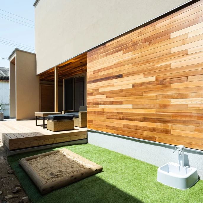 土間リビングから繋がるテラススペースやお庭を、セカンドリビングとして最高のひと時を過ごすことができます。お子様の遊び場にしたり、BBQ、ティータイムやランチを楽しんだりと様々な場面で活躍する空間となっています。