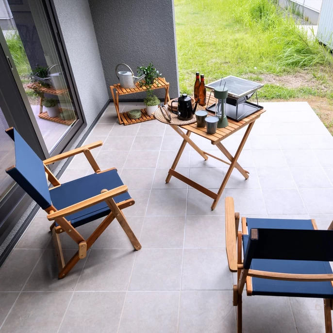プライバシーを確保しつつ、大きな窓から庭へと続くテラスは、家族や友人とBBQを楽しむための特別な空間です。外での賑やかな時間も、家の中の寛ぎの空間も、どちらも満喫できます。