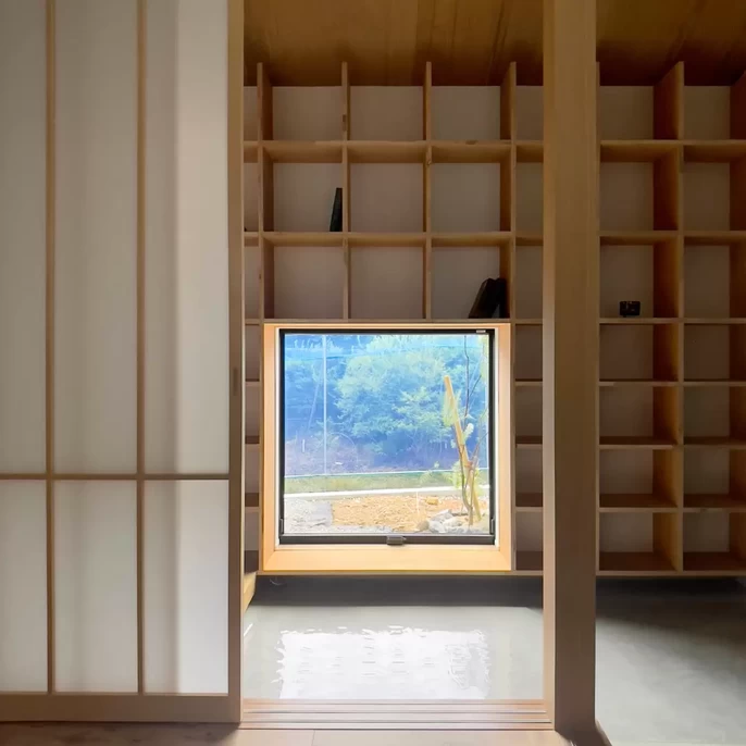 窓という枠を通して、時間とともに移り変わる稜線の風景をまるで一枚の絵画のように楽しめます。自然光が差し込む美しい景色が、外と中をゆるやかにつなぎ、日常に彩りをもたらします。