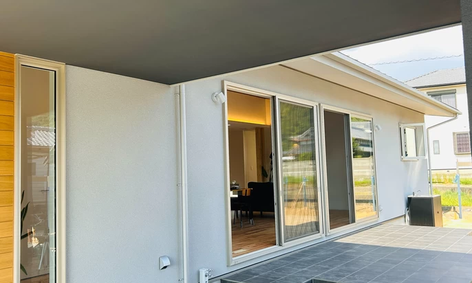 またガレージは屋根付きなので、濡れずに玄関と車を行き来できるのはもちろんのこと、お外遊びの際の日陰もつくってくれています。
