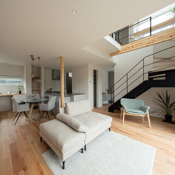 生活動線は、住む人の暮らしやすさを左右します。この家では、回遊動線を意識したレイアウトを採用しました。キッチン、リビング、ダイニングがスムーズに繋がり、家族やゲストがストレスなく過ごせるようになっています。