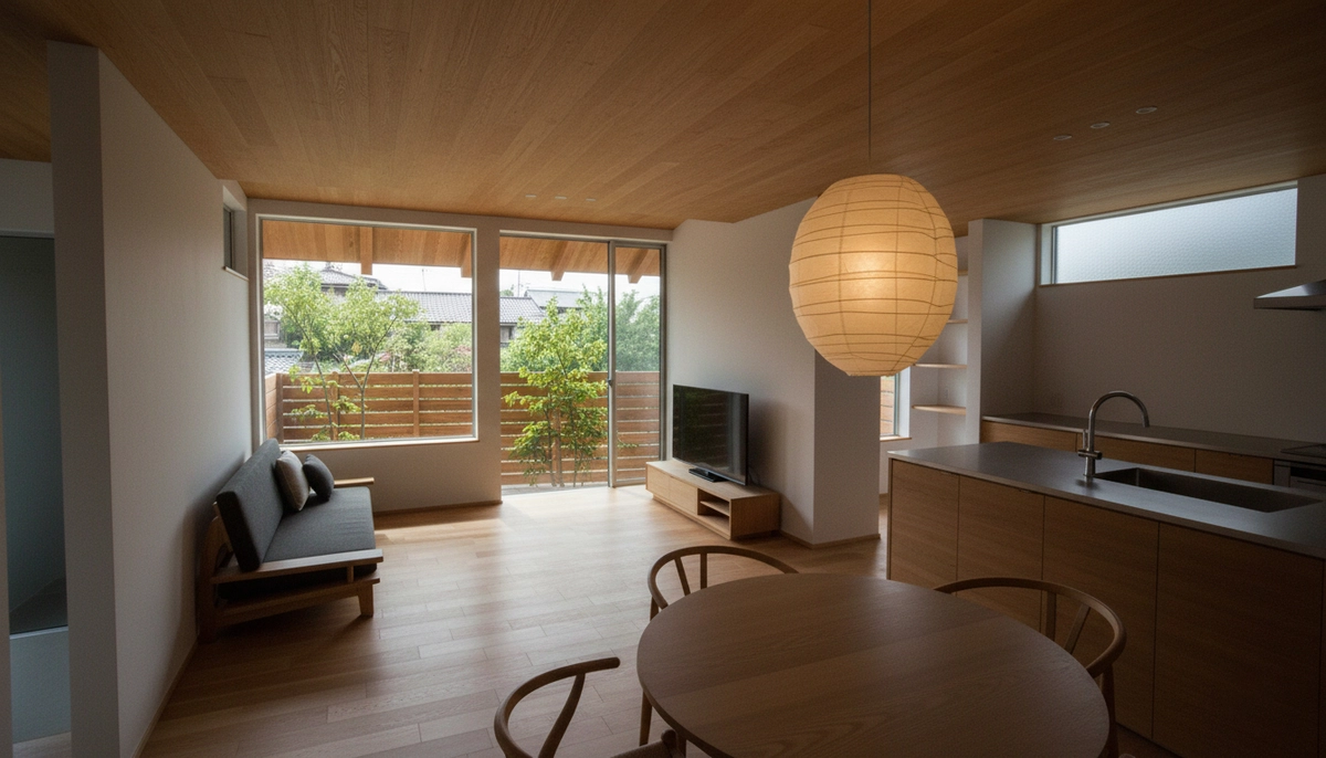ラワン張りの天井、勾配天井のリビング、畳コーナー、外構の植栽まで和モダンの美学を凝縮。まるでヴィラのような癒し空間で、ゆっくりと心から寛げます。「家で過ごす時間を大切にしたい」方必見のお家です。