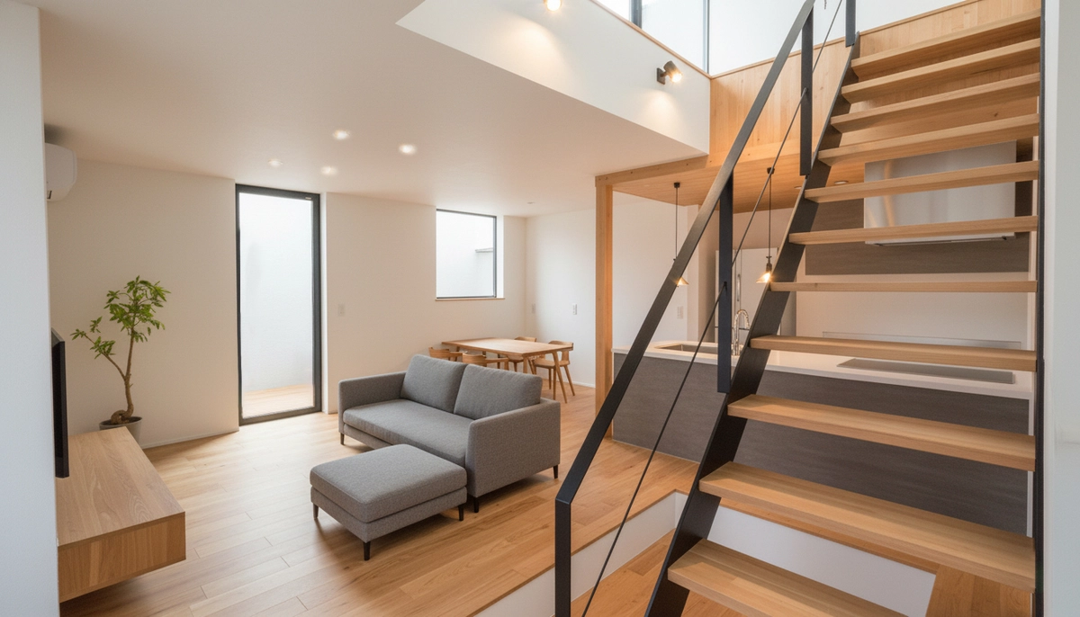 洗濯やトイレなどの生活音が気にならない適度な距離感の水回り。フレキシブルに使える2階の居室。