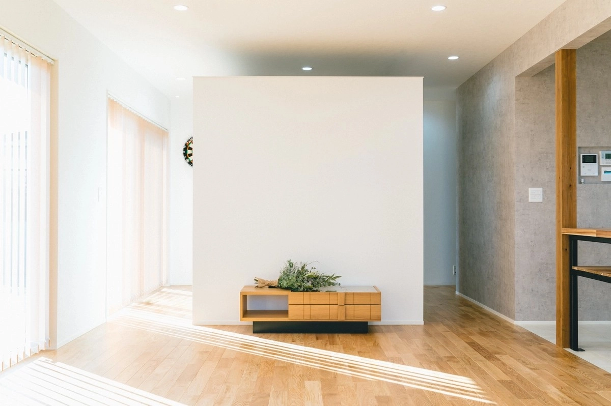 居住スペースの中心には、広々としたリビングルームがあります。大きな窓からはたっぷりの自然光が降り注ぎ、空間を明るく開放的に演出。 家族がそれぞれの時間を大切にしながらも、同じ空間で心地よく過ごせる――そんな希望を叶えた、家族団らんの中心です。