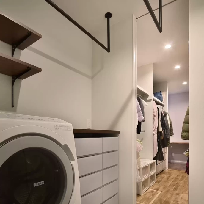 脱衣を兼ねた家事室。その先にはファミリークローゼットがあるので快適な家事動線となっています。