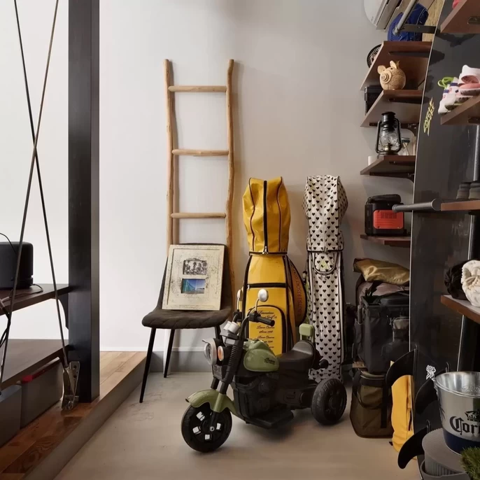 玄関には収納量たっぷりな見せる土間収納。多趣味なご家族にはぴったりです。