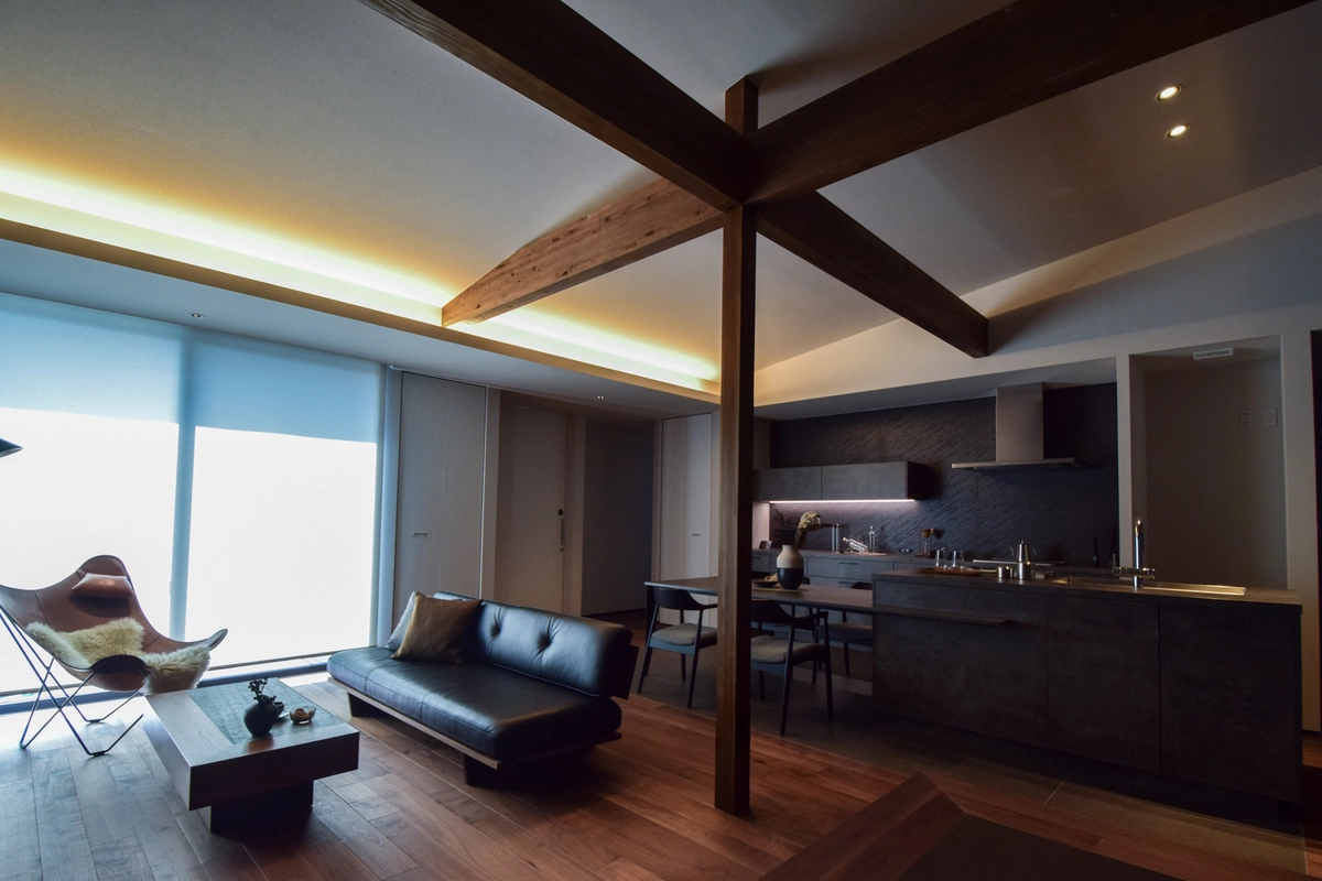 仕事終わりもゆっくりくつろげるよう、間接照明にも拘りました。