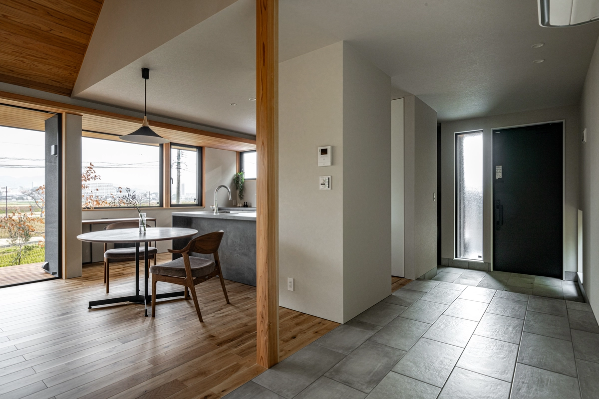 この平屋ではガレージからSCLまで扉一枚だけでアクセスできて、日頃のひと手間が省けて楽に。