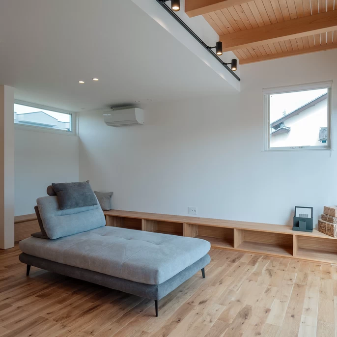 2階の大開口に面した床を「すのこ」にすることで、光と風が通り抜ける空間が誕生しました。朝日を浴びてヨガで体を整えたり、月明かりを感じながら晩酌を楽しんだり、家の中にいながら自然のリズムを感じられるはず。