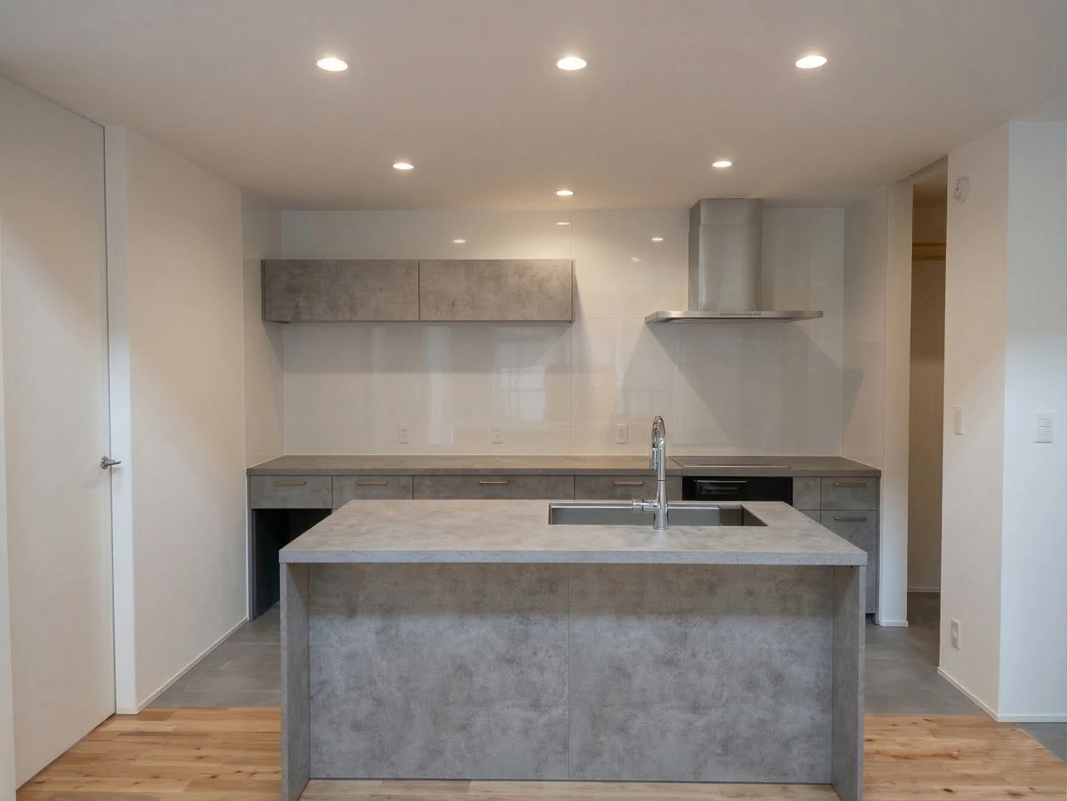シンクとコンロを分けた2列型のレイアウトは、広々とした作業スペースを確保し、複数人での料理もストレスフリーに。