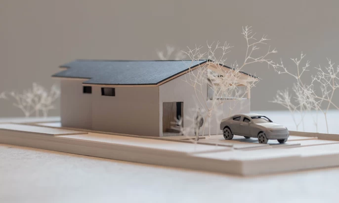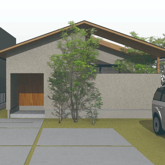 岐阜市の郊外、周囲を緑に囲まれた、コンパクトな平屋。