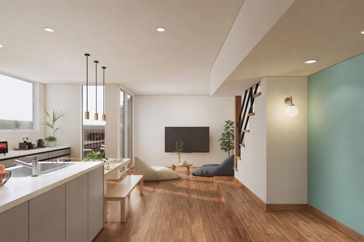 階段に頼らない生活動線が年齢を重ねても無理のない暮らしを支えます。今もこれからも快適に過ごせる住まいです。