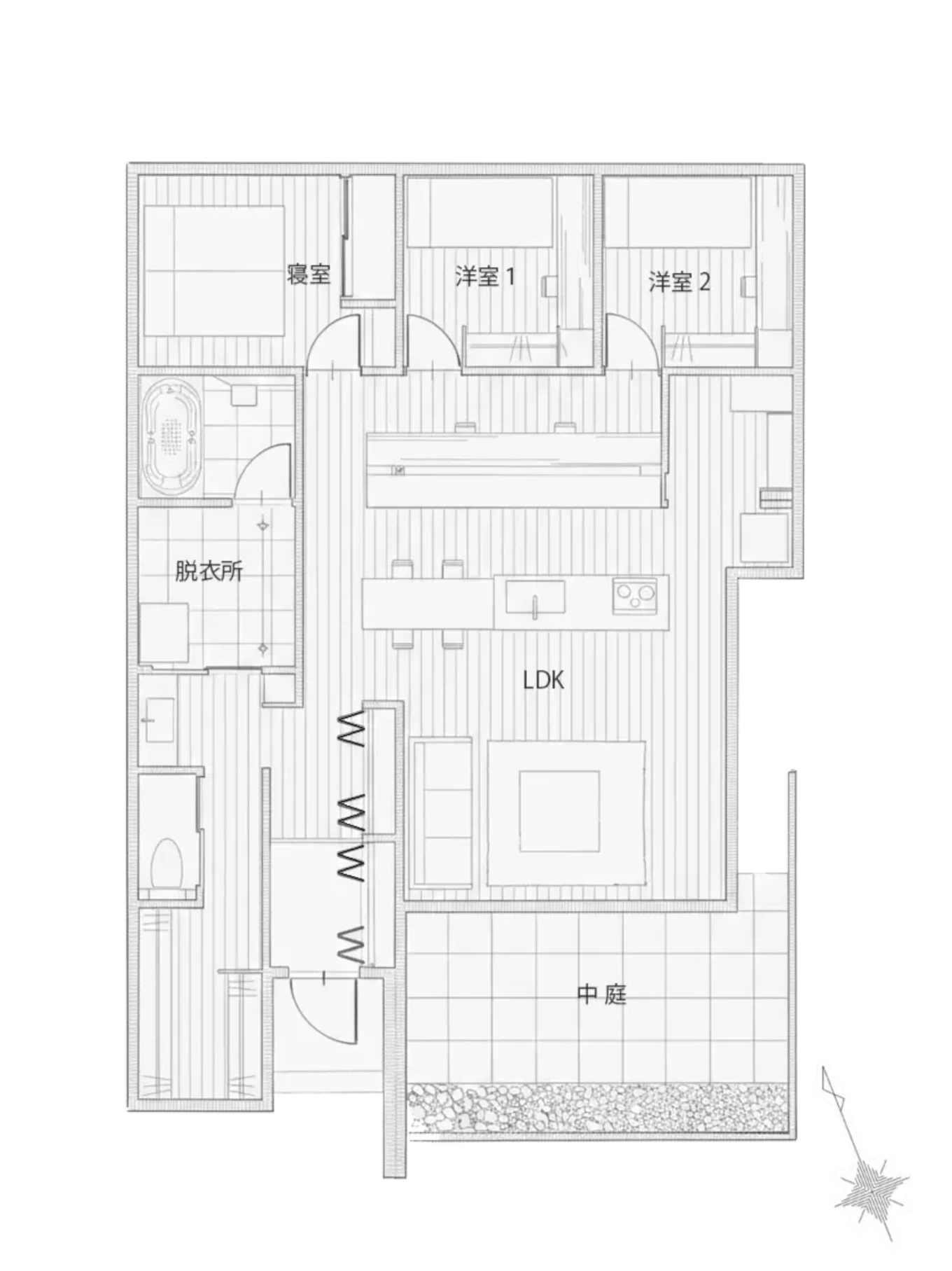 中庭とLDKがつくる