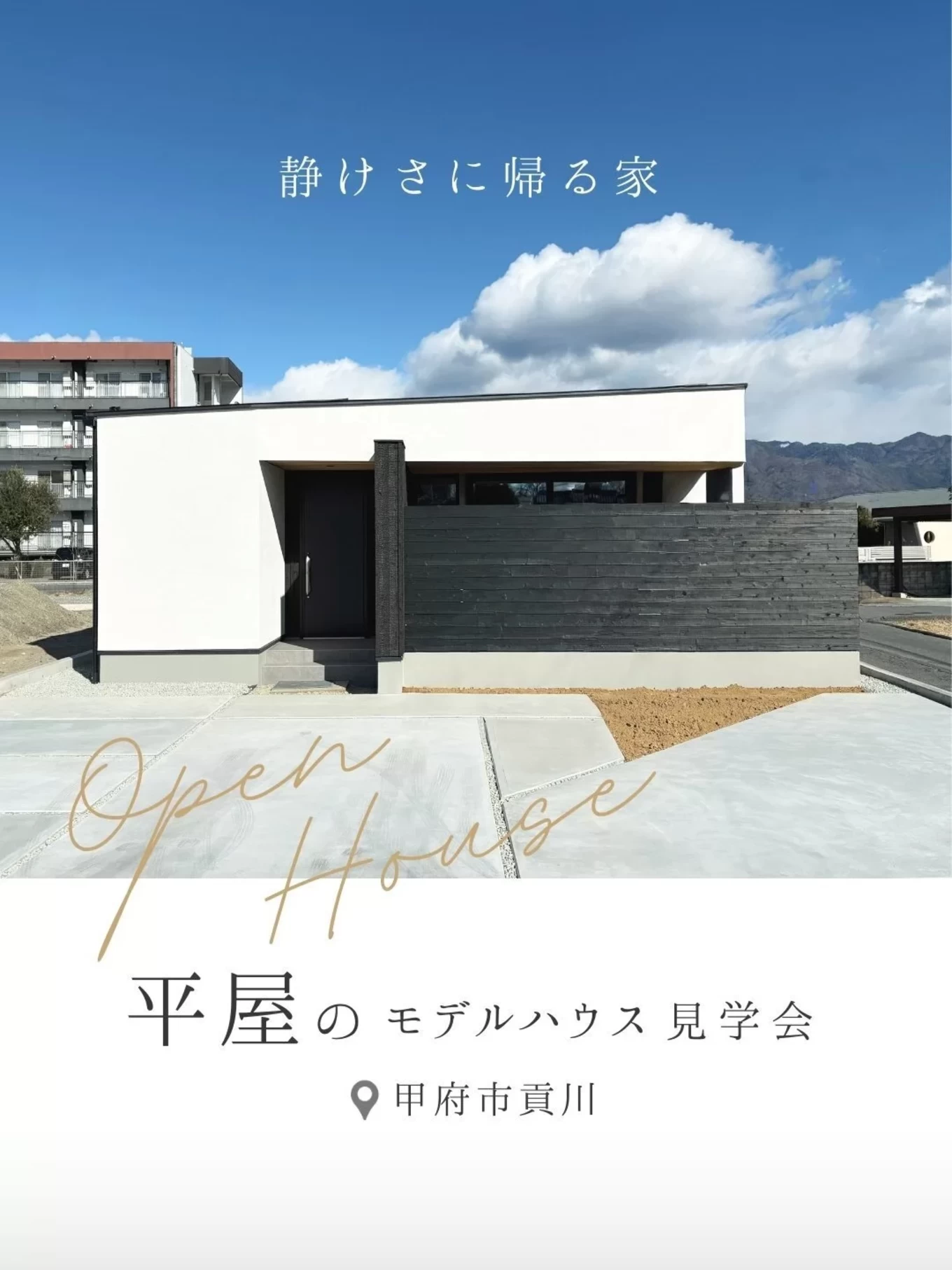 日常の中にある “静かな豊かさ” を大切にしたモデルハウスが甲府市にオープンしました。やわらかく差し込む光、時間とともに移ろう陰影、自然素材の手触り。図面や写真ではわからない “心が落ち着く感覚” を、ぜひご体感ください。