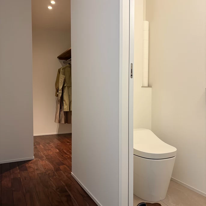 玄関に入った瞬間から、廊下・LDK・洗面・トイレまで、場所による温度差を感じにくい住まいです。高断熱・高気密だからこそ実現できる、「家の中を移動しても快適さが変わらない感覚」数値ではなく、実際の体感として確かめていただけます。