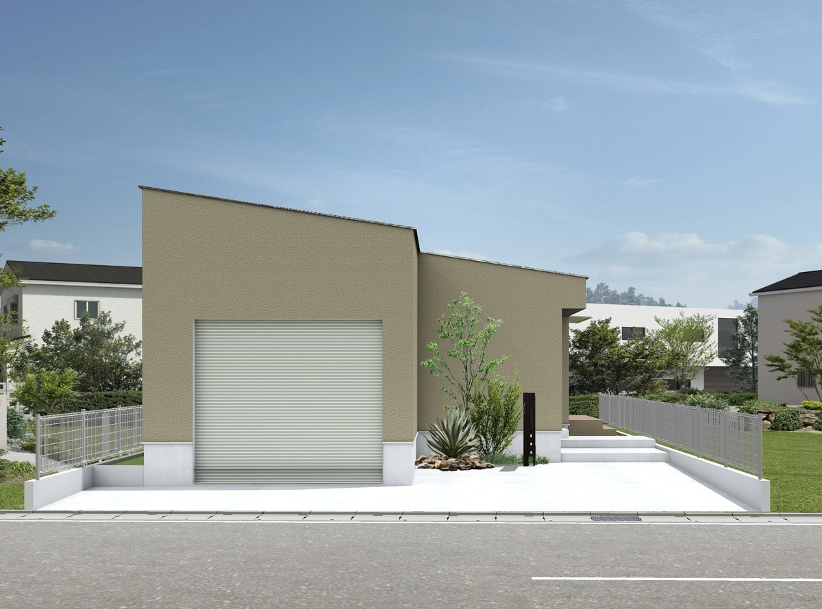 平屋でものっぺり見えない大人カッコイイ外観をつくります。