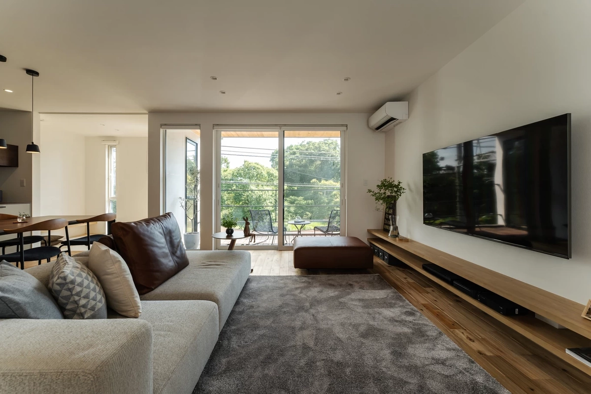 リビングとつながるインナーバルコニーは、まさに、外にあるもう一つの部屋。天候を気にせずBBQや外遊びを愉しむことができます。リビングの畳コーナーとも隣接しており、家族がそれぞれの場所でくつろぎながらも、心地よい一体感を感じられる空間になっています。