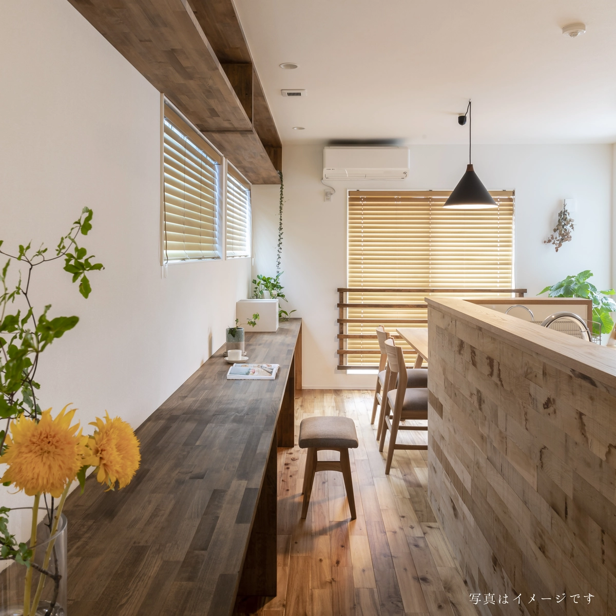 ダイニング横にはスタディコーナーを設置。リビング学習でお子様の成長を見守ることができます。ちょっと書き物をしたり、PC作業したり本を読んだりと使い方は無限大です。
