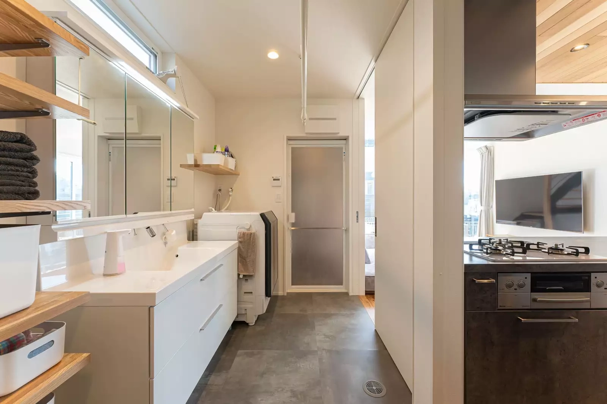 キッチンから洗面脱衣所、お風呂場、LDKへと回遊できる間取りに。キッチンで料理をしながら洗濯物を回したりも楽々。部屋への出入り口が2箇所以上あることで、ストレスなく移動や家事、生活をおくれます。