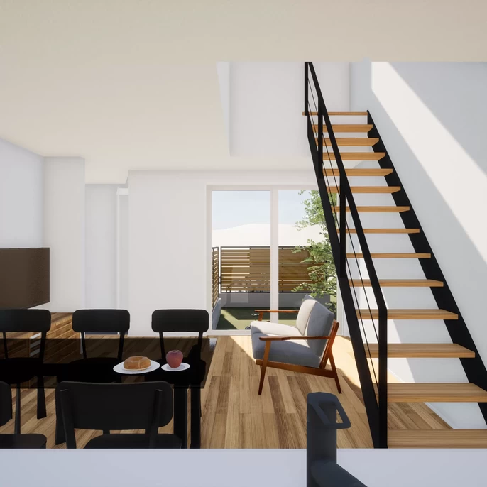 「隣家の影や視線を計算し尽くし、「守る壁」と「開く窓」を明確に使い分けました。 外からは閉じて見えますが、中に入ると圧倒的な開放感が広がります。 理に適った設計が生む、心地よい「余白」のある住まいです。」
