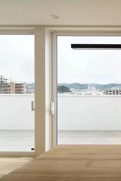 2階のルーフテラスから街を見下ろす家